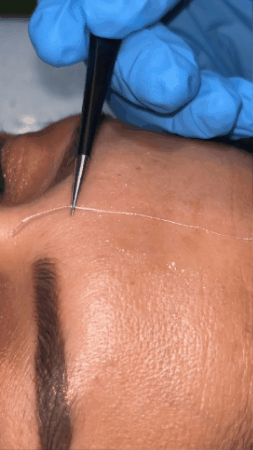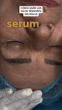 Aplica los hilos tensores sobre las zonas clave (frente, mejillas, cuello).